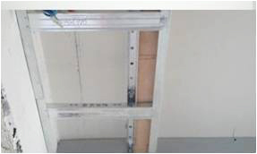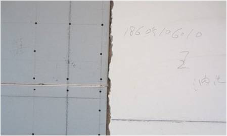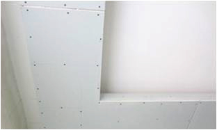 l 縫石膏板時,和老墻結合處,采用開槽去除粉刷層縫板過縫工藝處理。