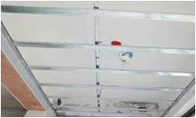 l 吊頂天花,正常使用輕鋼龍骨做基礎,(如使用木龍骨需在吊筋龍骨和延墻龍骨打膨脹螺絲處理,并刷好防火涂料)并在石膏板封板錢做好燈槽底板,這樣有利于燈槽內后期灰塵的處理及預防漏光。
