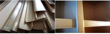 l 衣柜內的收口條采用PVC條,它的顏色和板材紋路基本一致,在制作柜體時,次板比主板落差3mm。