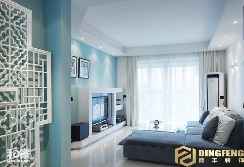 推薦2:藍色的墻面清新淡雅,搭配碎花復古地毯別有一番風味,可以讓整個空間有一種混搭的時尚感。