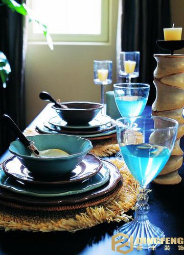 餐桌的擺放決定了餐廳的氣氛,灰度的暗色組合中搭配溫暖柔和的清新色彩,仿佛是灰色城市上空一束沖破云層的明媚光線,使空間中流淌著雅致、豐富的溫暖格調。光線可以讓居室空間更加明亮,配飾更是不容忽視的重點,燈飾、花卉、燭臺不同色彩與質感的融合,調劑家居視覺與感覺的平衡。